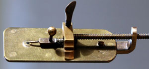列文虎克使用的500多个显微镜都是自己制作的。每个显微镜都有一块镶嵌在小孔处的小玻璃透镜,玻璃透镜由两片被铆接在一起的小金属板(长度不超过5厘米)固定。标本被放置在小孔前的一个尖头上,可以通过调整两个螺丝进行聚焦。列文虎克将显微镜的反面靠近眼睛,用烛光或日光做光源。