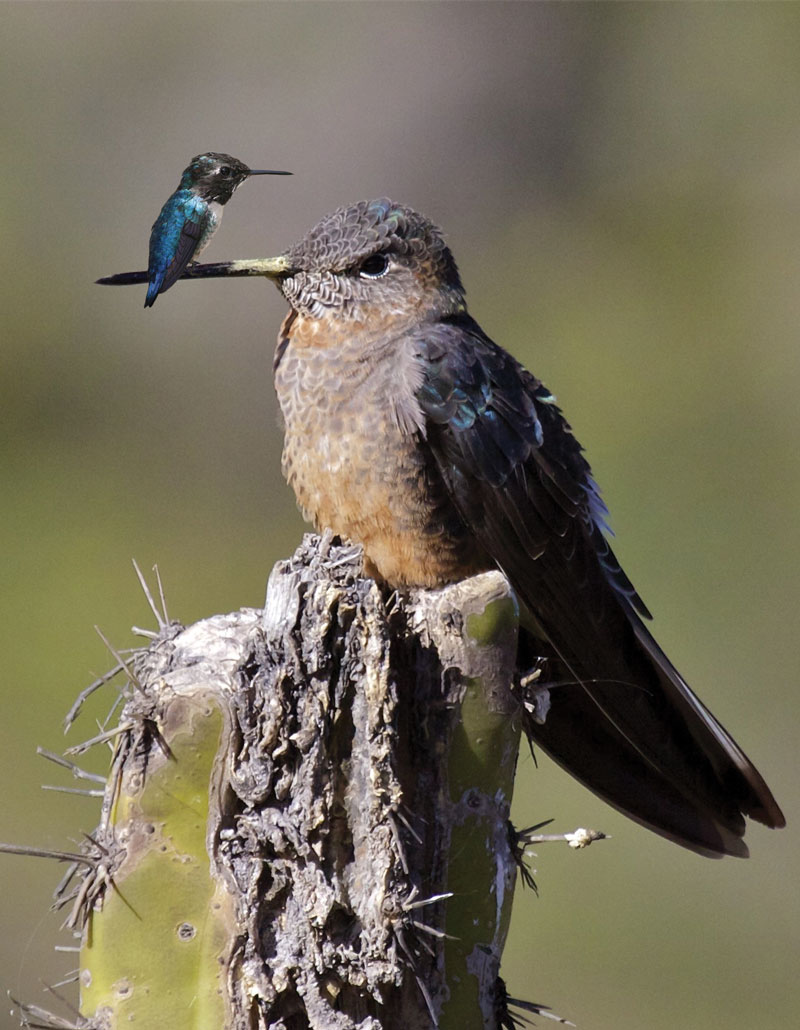 吸蜜蜂鸟(左图)只有5厘米(2英寸)长,而巨蜂鸟(下图)则可长达22厘米(超过8英寸)