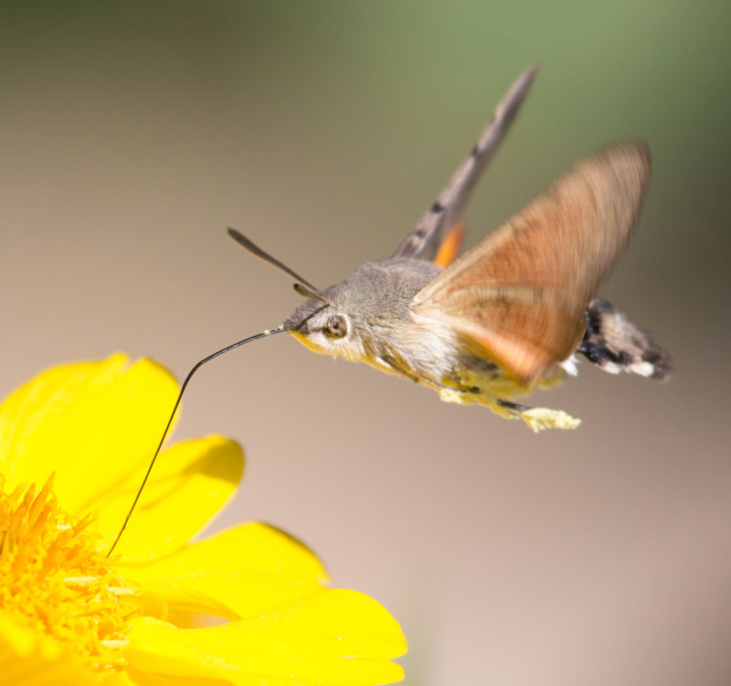 从上文中,我们看到了蜂鸟飞行的奇妙。令人十分惊讶的是,人们还发现了一种与蜂鸟外观异常相似的飞蛾,叫蜂鸟蛾或蜂鸟天蛾(见左图)。这些飞蛾的动作、飞行和盘旋方式和蜂鸟的极为相似。它们甚至还会发出相似的嗡嗡声,如蜂鸟一般旋停于花儿前,张开细长喙管,吸吮花蜜。乍眼一看,这些昆虫常常被人误当成小蜂鸟。我们能用‘趋同进化’解释它们之间惊人的相似行为吗?趋同进化的观点认为生物的进化会相互独立地趋近,产生相似的结果。但这个仅是一厢情愿的说法,并不能解释生物间毫无关联的进化史为何能偶然产生那么多刚好相似的形态。当然,这种鸟和昆虫之间,实际的差异不可胜数。简单来说,蜂鸟蛾没有羽毛,蜂鸟的翅膀结构、骨架、血液循环和呼吸系统也和飞蛾完全不同。进化论建基于共同祖先,但是面对这只奇妙的蜂鸟和蜂鸟蛾之间的相似性,没有哪位理性思考的进化论者会将其归因为共同祖先进化的结果。如何更加合理地解释这些相似的功能性设计呢?这当然是出自同一位设计师的手笔。