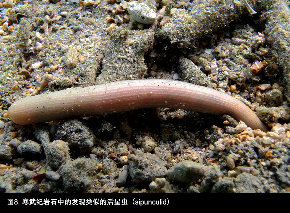 图3-9. 寒武纪岩石中发现的生物化石样本: