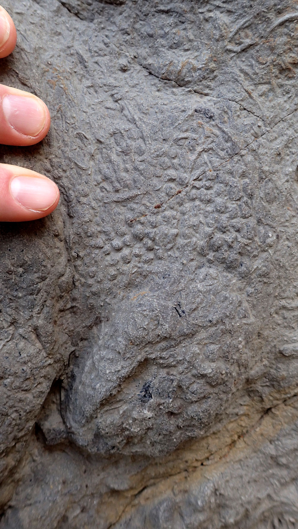 剑桥大学研究小组发现并记录了超过 85 例带脚印的化石,至少代表了七个物种。1“且不说这些脚印样本充足丰富,种类多样,我们还看到了令人难以置信的细节,”第一作者安东尼·希利托(Anthony Shillito)说:“你能清楚地看到皮肤和鳞片的纹理,以及四趾爪的抓痕,非常罕见。”2