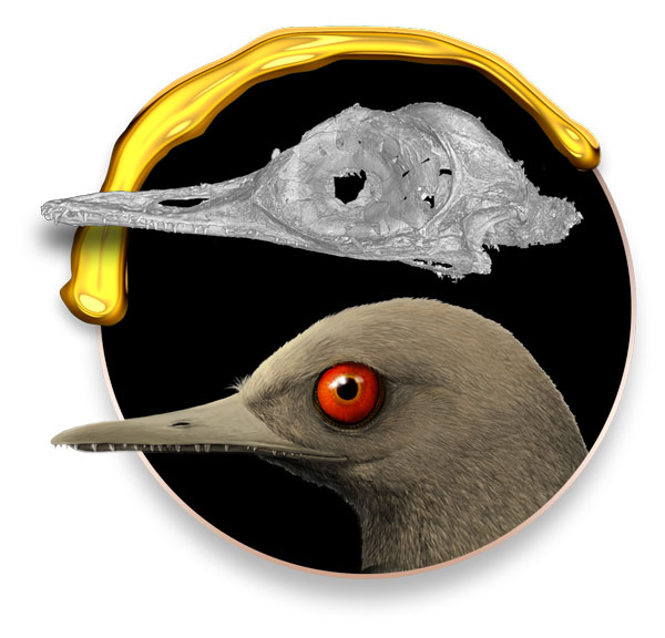 近期一篇研究论文起了一个耸人听闻的标题,就是“和蜂鸟一样大小的恐龙”11,而事实是在缅甸出土的琥珀中发现了一只鸟的头骨。它被命名为宽娅眼齿鸟(Oculudentavis khaungraae),其头骨只有 1.5 厘米长,所以它的大小被认为与我们已知最小的蜂鸟差不多。根据头骨的生长情况,研究团队判断它是成年的,并注意到它一些不寻常的特征(眼窝位置的骨头凹陷较浅,像汤匙的形状,这很可能是因为它的眼球是部分凸出到头部外面的,有着非同寻常的外貌)。研究人员宣称造成这些特征的一个原因可能是“小型化的作用”。当然,它独特的特征完全可能是它在第5 天被造时就拥有的,只不过后来这个物种灭绝了。