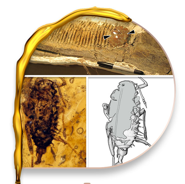 在缅甸的琥珀中识别出了两种保存完好的蟑螂,这些蟑螂特别适应在洞穴环境中生存 7。它们被分类归于穴蠊科,命名为Crenocticola svadba 和 Mulleriblattina bowangi( 图3)。这块琥珀被定年为“9900 万年”,于是这些蟑螂被认为是迄今发现的最古老的穴居动物。