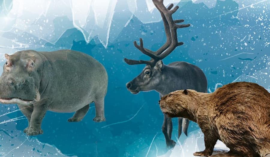 图 1. 驯鹿 | 图2. 河马 巨型海狸 | 图3. 河马 |