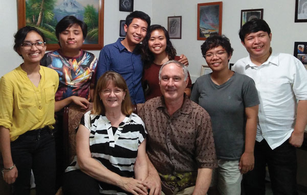 左图:罗兰与IFL的学生和员工观察月食; | 右图:罗兰夫妇在IFL的创造福音事工上鼓励年轻的FORGE(一个福音团体)的成员 |