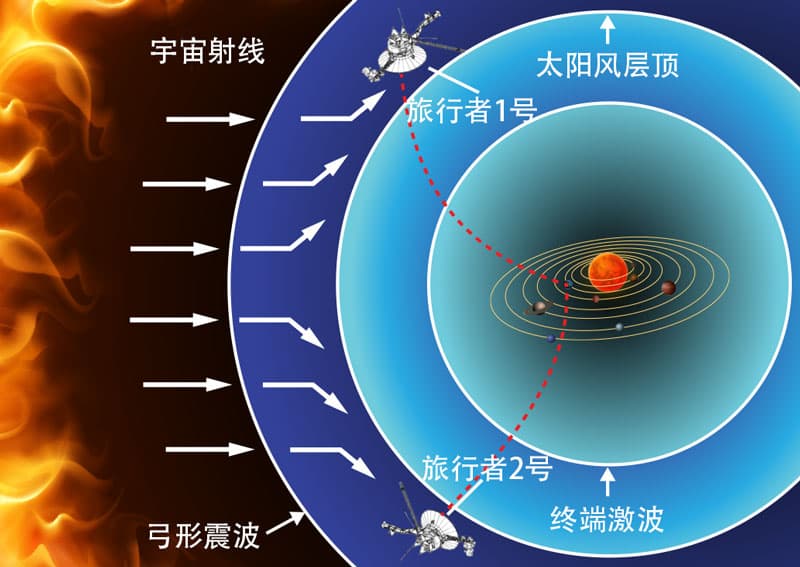 太阳还会产生一种非常快的带电粒子流,称为太阳风。1977年发射的旅行者号空间探测器发现,远在太阳系的所有行星之外,太阳风仍在吹。最近旅行者2号发现,这种太阳风起到了“屏障”的保护作用。如果没有它,宇宙射线将危害地球上的生命。