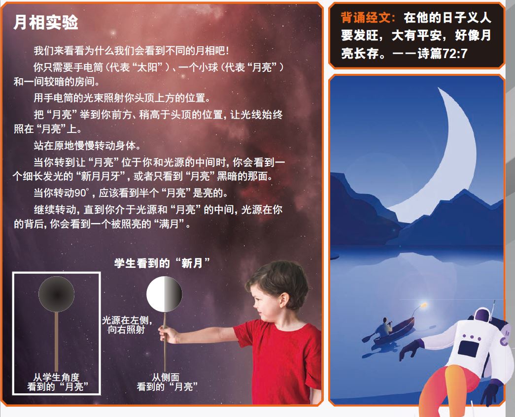 圣经称月亮为“较小的光”,但并没有说月球是如何发光的,但数千年来人们已经知道月球不能自己发光。相反,它是被太阳照亮的。只有面向太阳的那一面是亮的。