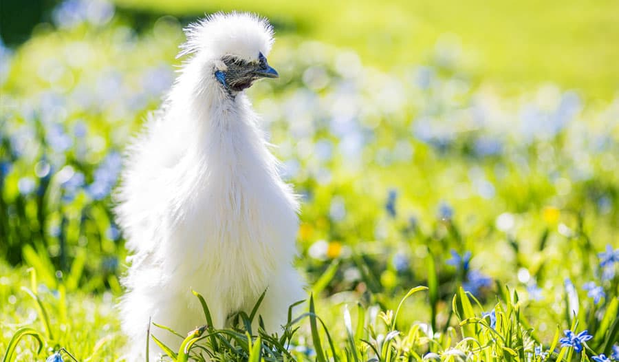 2. 有些品种根本不会飞。丝羽矮脚鸡的羽毛蓬松,因而无法飞行。